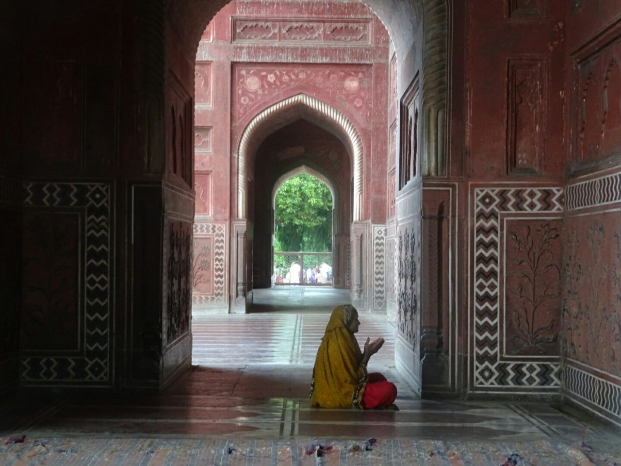 La mosquée attenante au Taj est la quasi-réplique de celle de Lahore. Je ne peux d’ailleurs m’empêcher de trouver ironique que le bâtiment le plus iconique de l’Inde soit un joyau musulman. Quand on connaît l’histoire de l’Inde et sa relation encore compliquée avec l’Islam, c’est un peu étonnant. Mais l’Amour est universel et l’histoire de cet empereur qui fit construire cette folie pour sa défunte aimée participe grandement au mythe. Il n’empêche que j’ai la vague impression que le mot musulman est tabou et qu’il est partout remplacé par « moghol ». Bref…