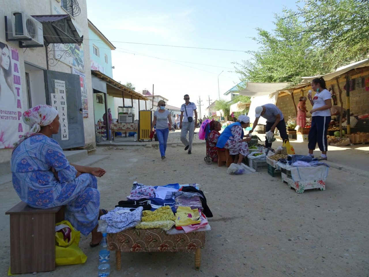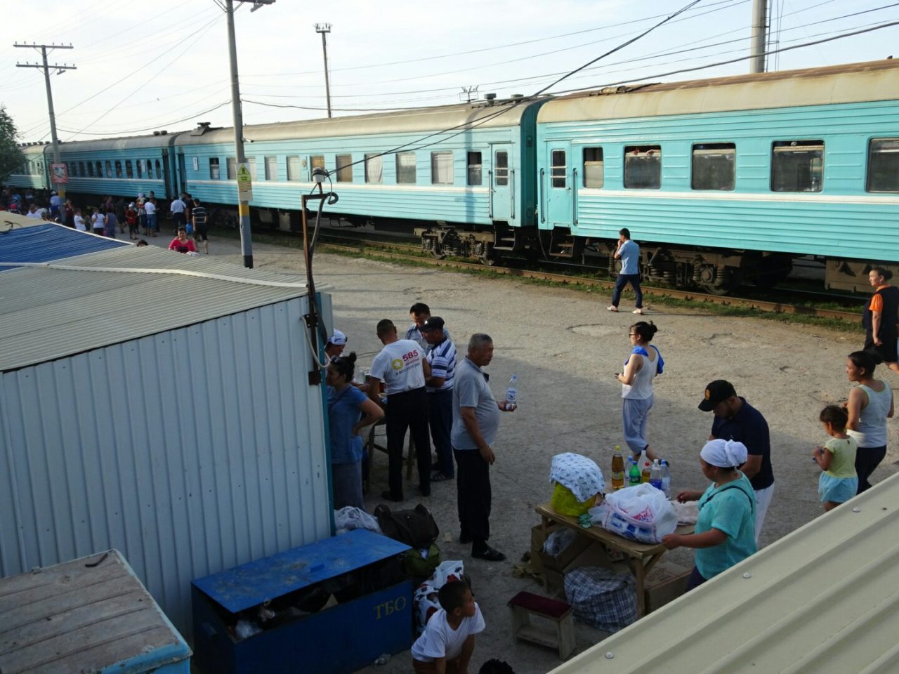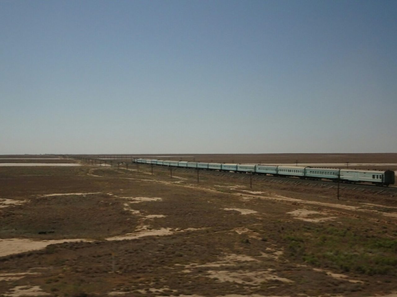 Juste pour ce jeu de mot nul, je ressors le panneau de stop pour rejoindre Beynéou, la petite ville où l’on peut passer en Ouzbékistan par le rail. (De l’avis général, faire du stop dans le désert ouzbek n’est vraiment pas une bonne idée.)