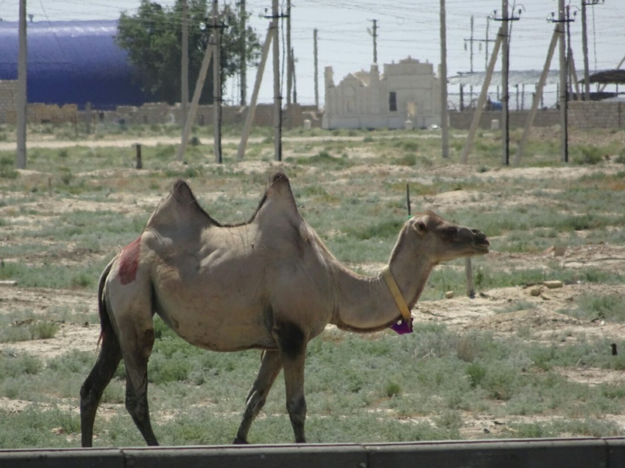 Le paysage n’est guère varié mais d’une beauté hypnotique. Complément plat, avec des plantes rases et quelques troupeaux épars. Chevaux mais surtout chameaux, qui traversent sans crier gare. Des tâches blanches qui ressemblent à des mirage rompent la monotonie. Du sel !