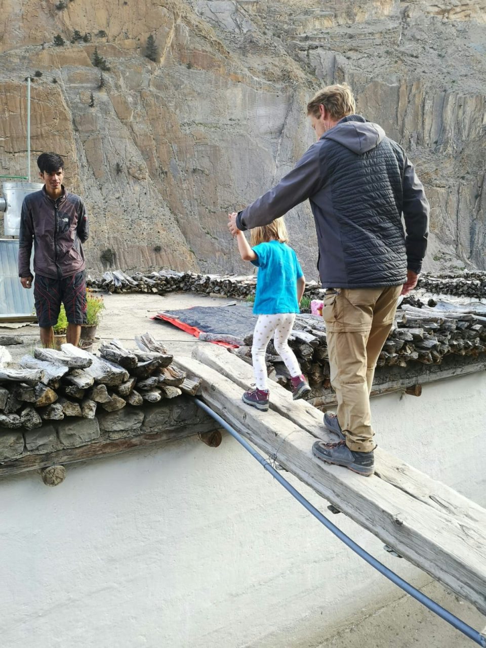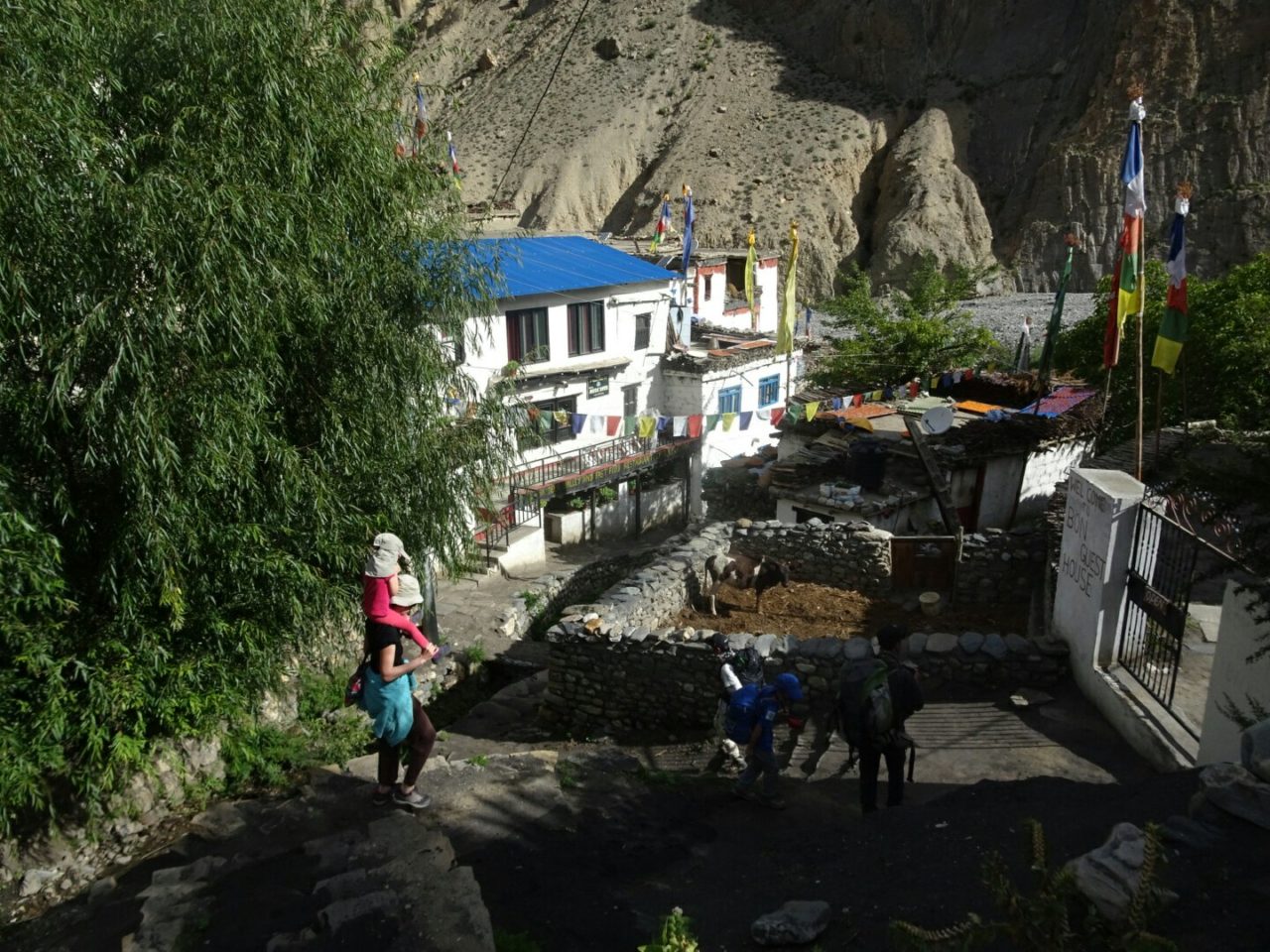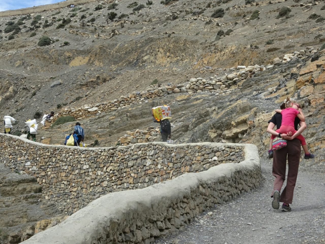 La descente sur le sentier étroit qui serpente au cœur des pierriers mettra les articulations à rude épreuve. Mais Timothée est tellement à l’aise que notre porteur l’embarque à travers les raccourcis et lui donne même rendez-vous dans 10 ou 15 ans pour un trek himalayen d’envergure…