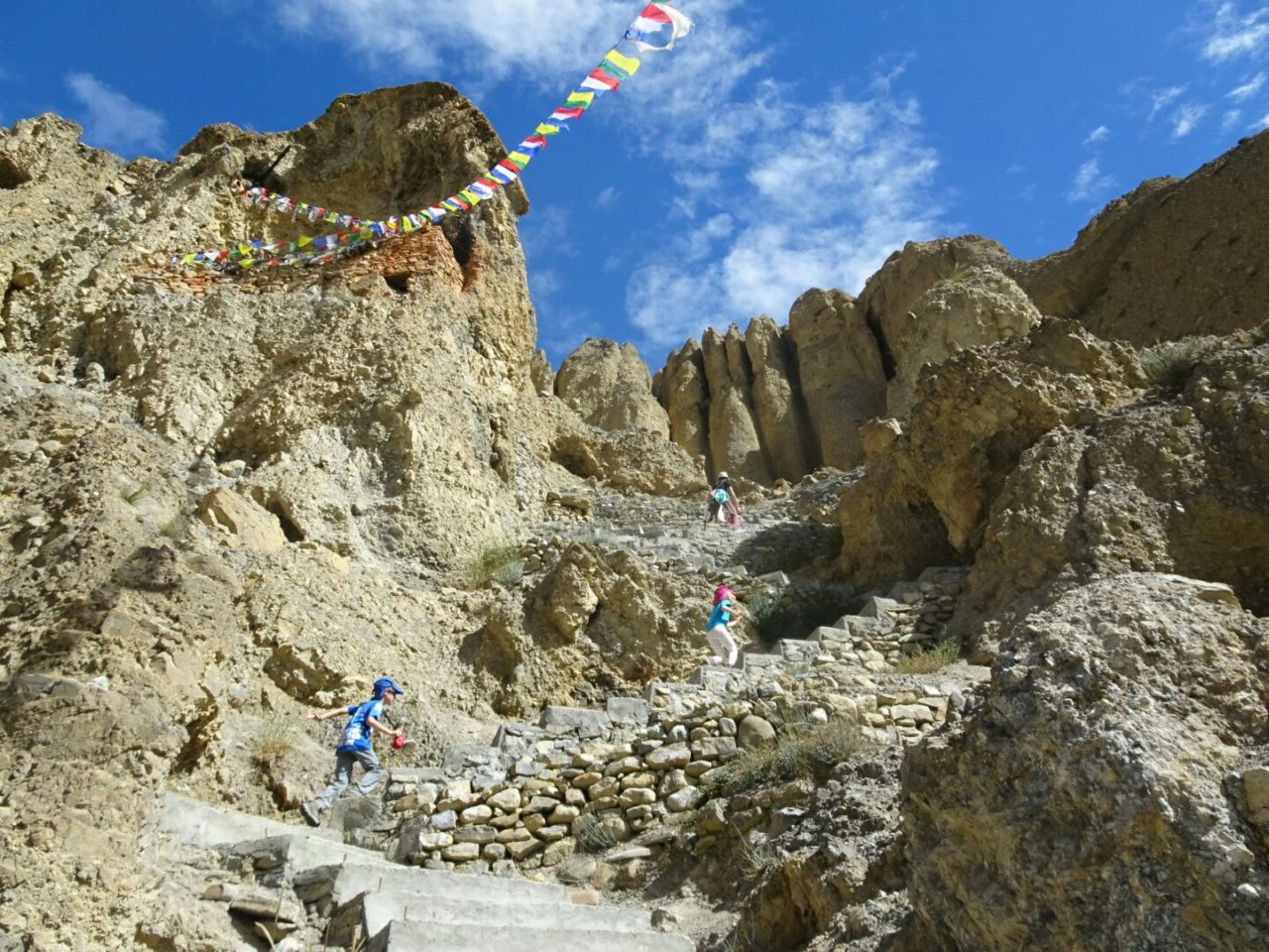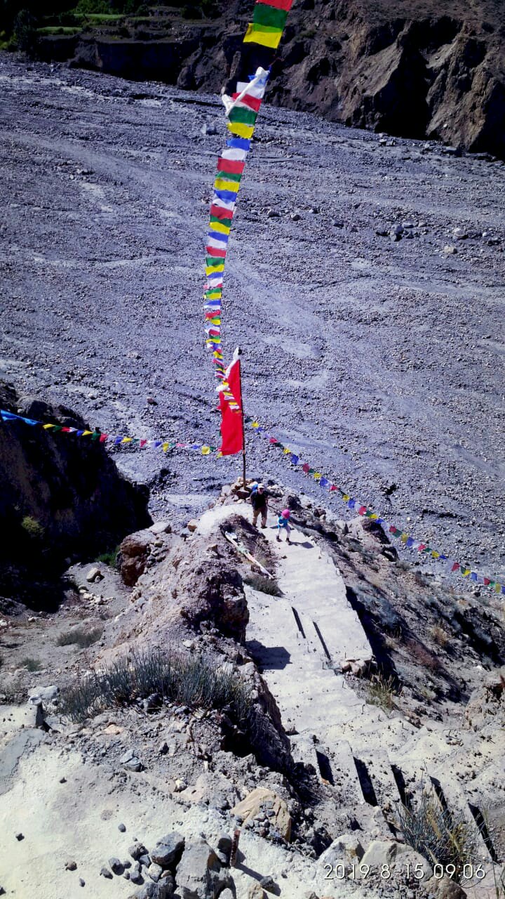 Mais nous sommes motivés et après la visite des grottes de Lupra qui servent de lieu de retraite spirituelle à qui est tenté par une expérience d’ermite, on franchit un énième pont himalayen avant d’attaquer le dernier gros effort.
