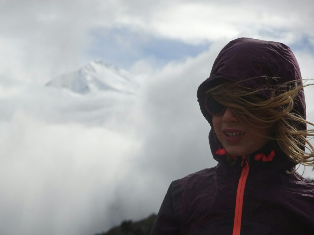 Mais le vent permet aussi d’espérer secrètement apercevoir glaciers et sommets et effectivement ceux-ci nous récompenseront en haut du col.