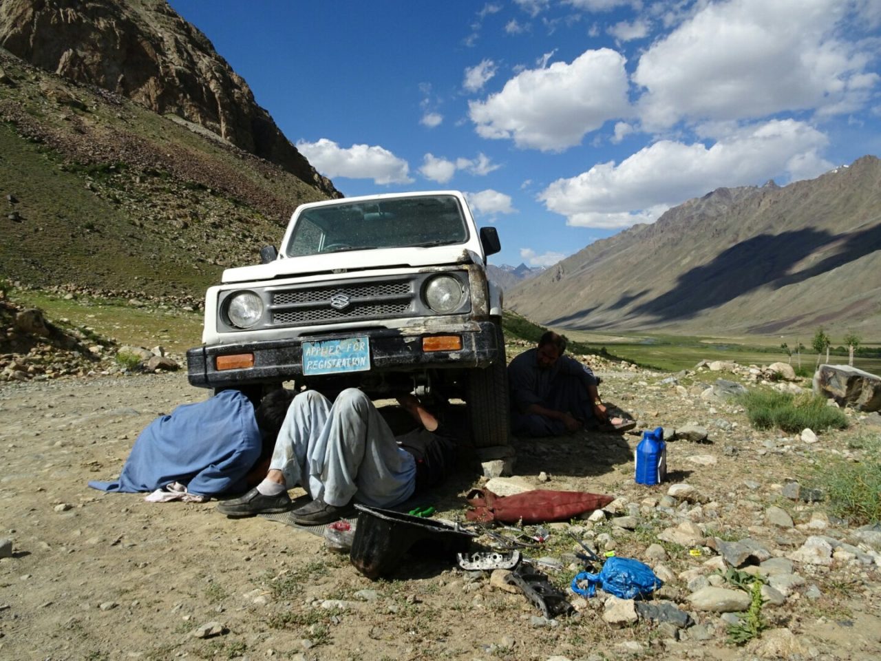 La route goudronnée n’est plus qu’un vague souvenir. On cahote sur une piste en piteux état. Alors, profitant d’un arrêt, Shabir le farceur me dit de monter dans le bon véhicule et laisse le tacot aux deux autres, qui n’ont pas le temps de réagir.